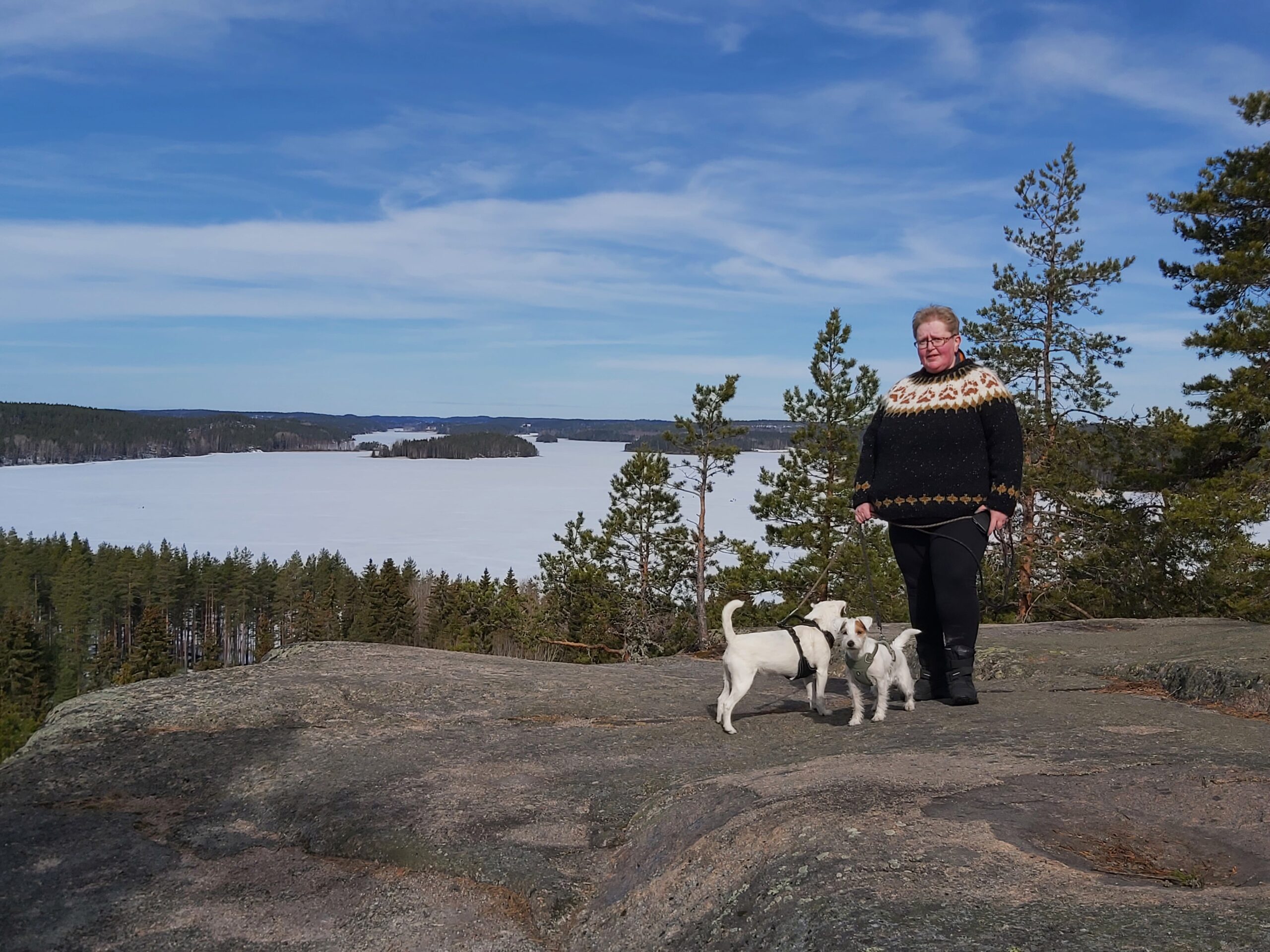 Vuonna 2016, kun vetovastuu siirtyi minulle, Ari siirty ammattimetsuriksi. Hänet kuitenkin löytää sateisina päivinä verstaan puolelta. Meillä ei siis käytetä kiven hiontaan lapsityövoimaa, vaan suomalaista eläkeläistyövoimaa, oman työpanokseni lisäksi. Mukana minulla kulkee töissä työnjohtajat Alma ja Arttu, parsonrusselinterrierit. Toiset teistä ovat heidät tavanneetkin. He ovat myös minun voimalähteeni. Ja yhdessä kuljetaan luonnossa, usein geokätköillen. Luonto on ehtymätön voimavara.